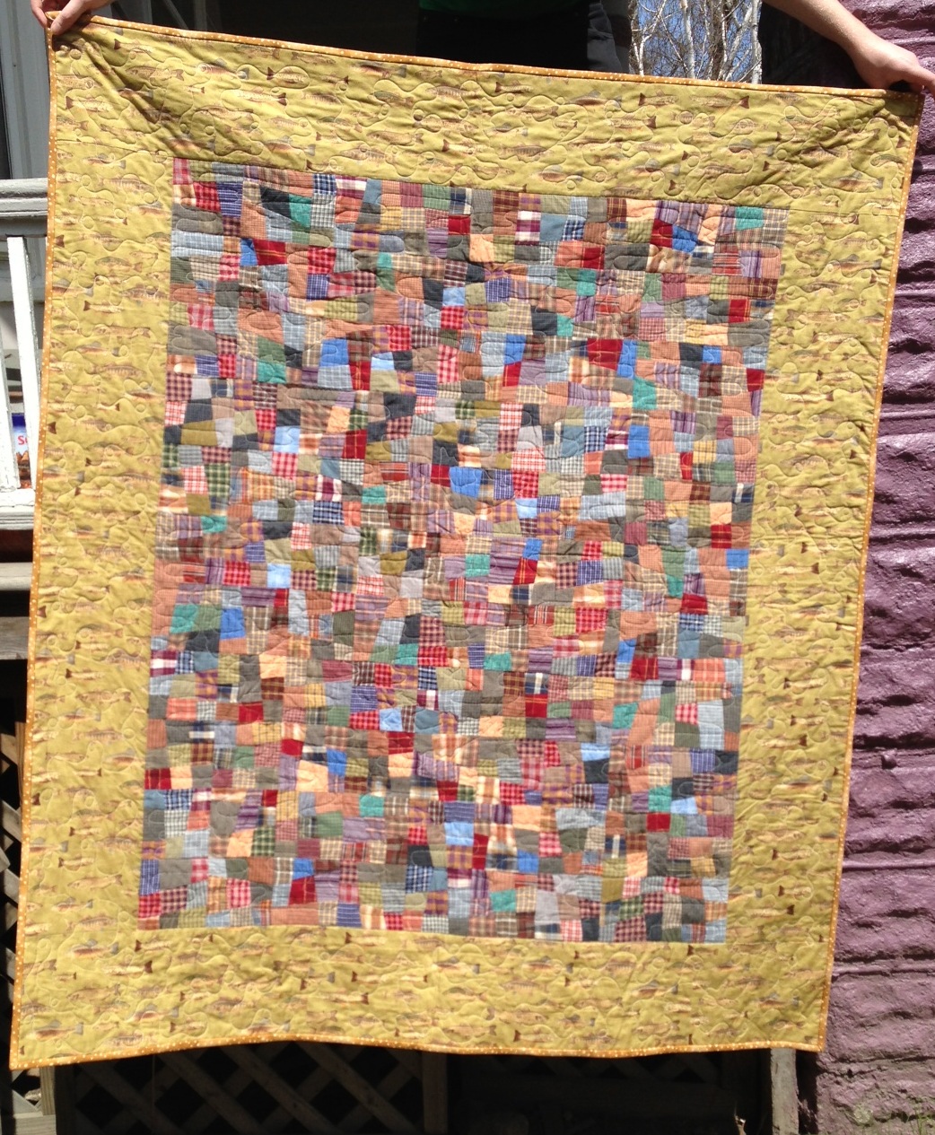 It is made from thrifted 100% cotton shirts, plus a few from Andy's closet.